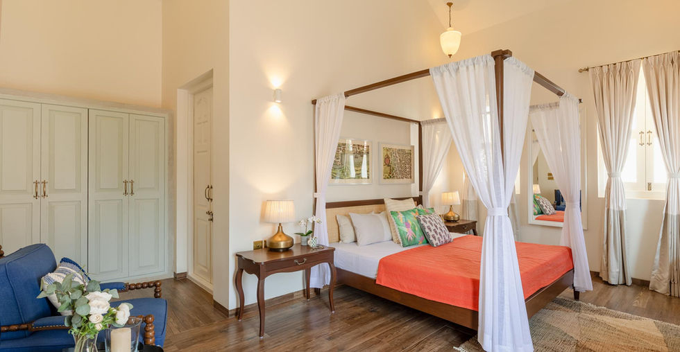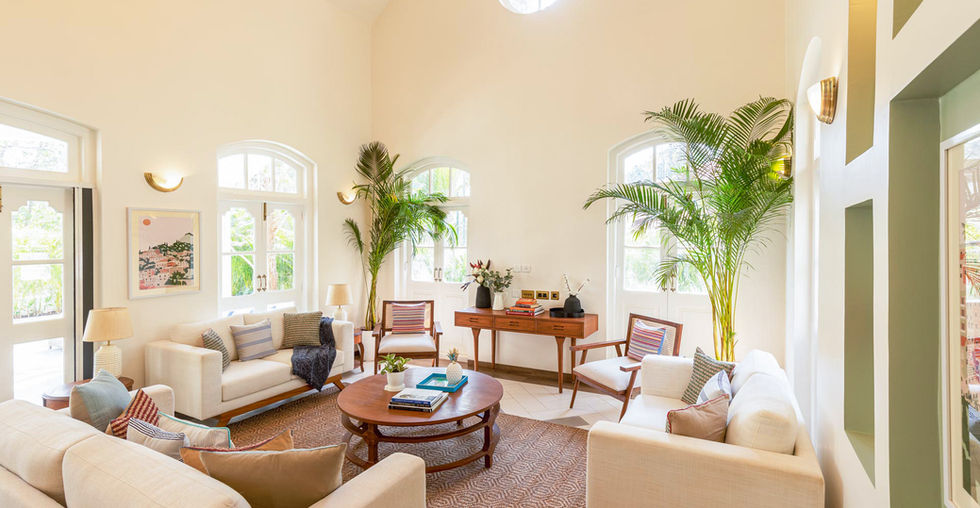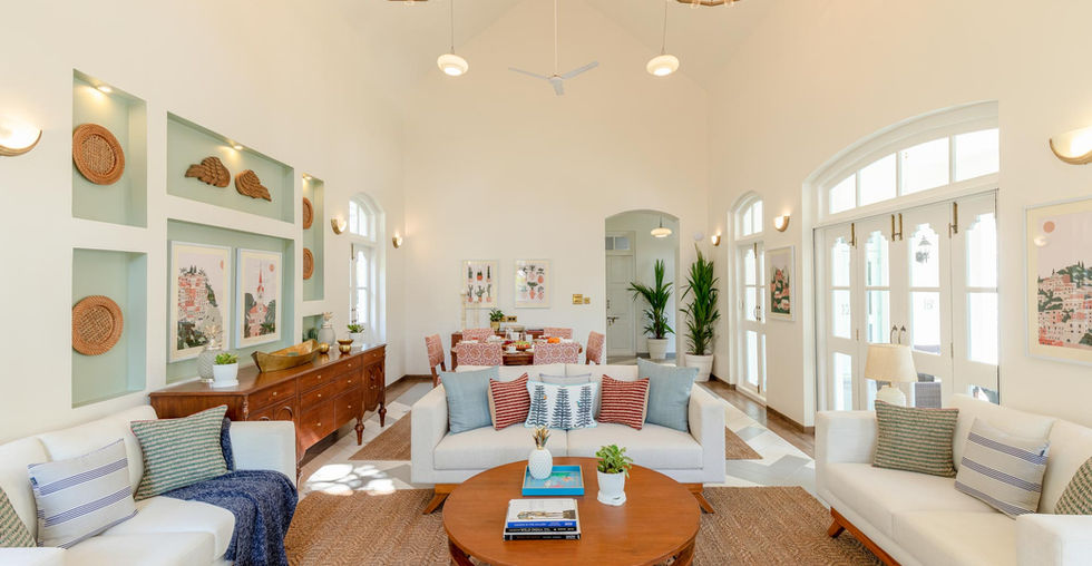 With a Greek inspired spatial language, Silvio Villa A is the perfect blend of old-world elegance and modern comfort. Part of an Isprava -built gated community in the heart of Assagaon, the two-storied home comprises 3 ensuite bedrooms, a living and dining room, a terrace and a private pool. The minimalist palettes and silhouettes, cane finishes, botanical murals and coloured prints bring to life the balance between the tropical colonial style interiors and boho chic aesthetics. Get away with family or friends for intimate celebrations, relaxing vacations or the perfect workation.